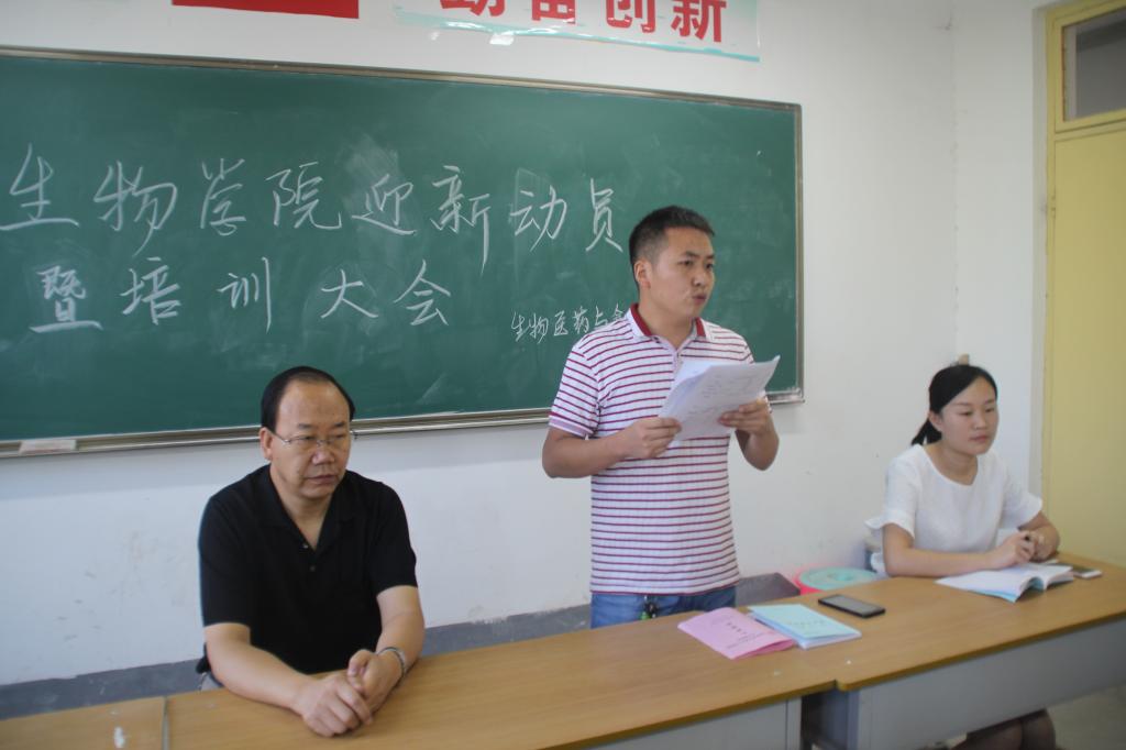 新学期开始了,新一轮的迎新工作已经开展。为了给新生展现最好的学院风貌,使得迎新工作顺利且优质完成,我院于2016年9月1日下午在5号教学楼502教室开展了2016级生物学院迎新动员暨培训大会。出席本次会议的人员有生物院党总支副书记丁争尚、团总支书记苏铁柱老师、侯小洁老师及生物院志愿者,大会由团总支书记苏铁柱老师主持。