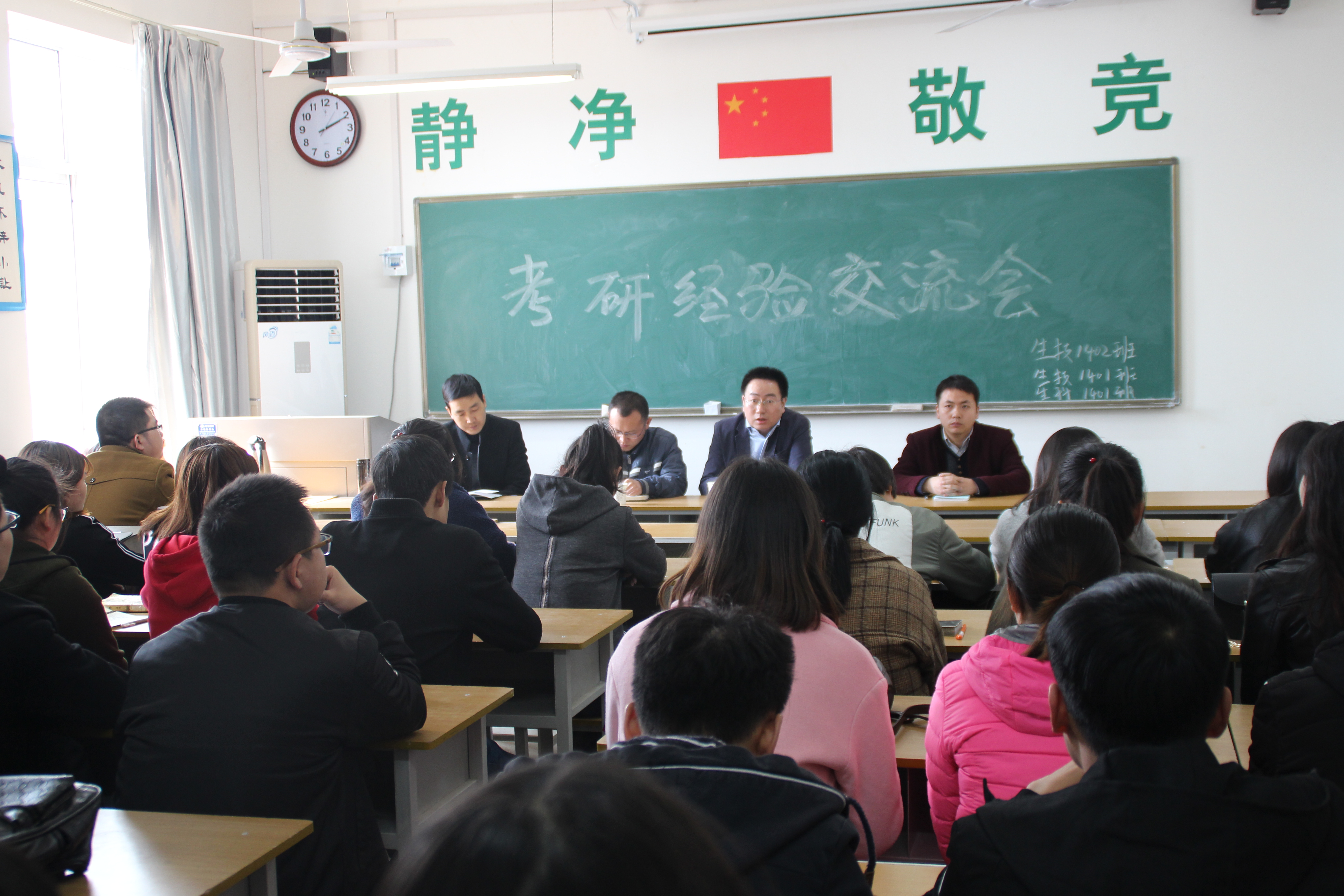 会议首先由副院长郭耀东作了重要讲话,他深入分析了当下的考研形势,并指出此种形势对学生的有利之处,鼓励同学积极考研,努力拼搏。在交流会上,考研取得优异成绩的几位学生代表从自身考研经历出发,围绕如何选取专业和院校、制定复习计划、调整心态及复试中的注意事项等方面谈了自己的亲身体验和感受。
