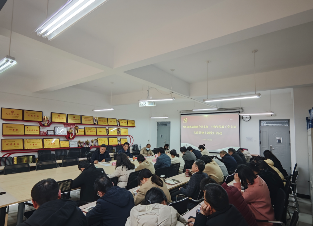 11月26日,组织部统战部联合党支部与生物学院教工党支部联合开展主题党日活动。活动由生物学院党委书记杨力主持。
