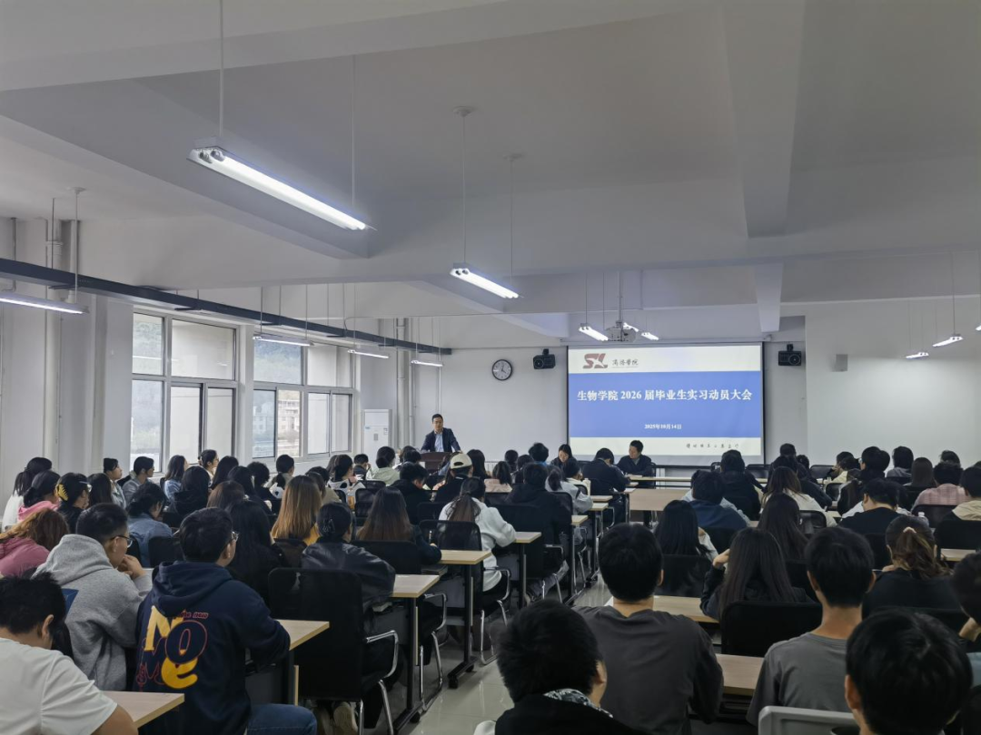 为扎实做好2026届毕业生综合实习工作,生物学院10月14日组织召开2026届毕业生第一批综合实习动员会。副院长梁旭华,各系主任,学工办主任赵利君、实习指导老师及毕业生辅导员参加会议。动员会由学院党委书记杨力主持。
